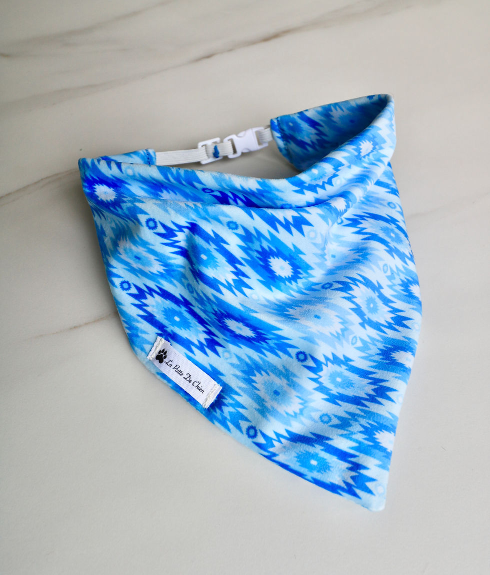 La Patte de chien veille à sélectionner des tissus originaux pour que votre toutou soit original avec ses bandanas ! Vôtre compagnon mérite d'être stylé en toute situation, que ce soit pour une randonnée ou un évènement nos bandana sont adaptés. Nous vous proposons des bandanas à glisser sur le collier ou bien avec attache intégrée sur le bandana.